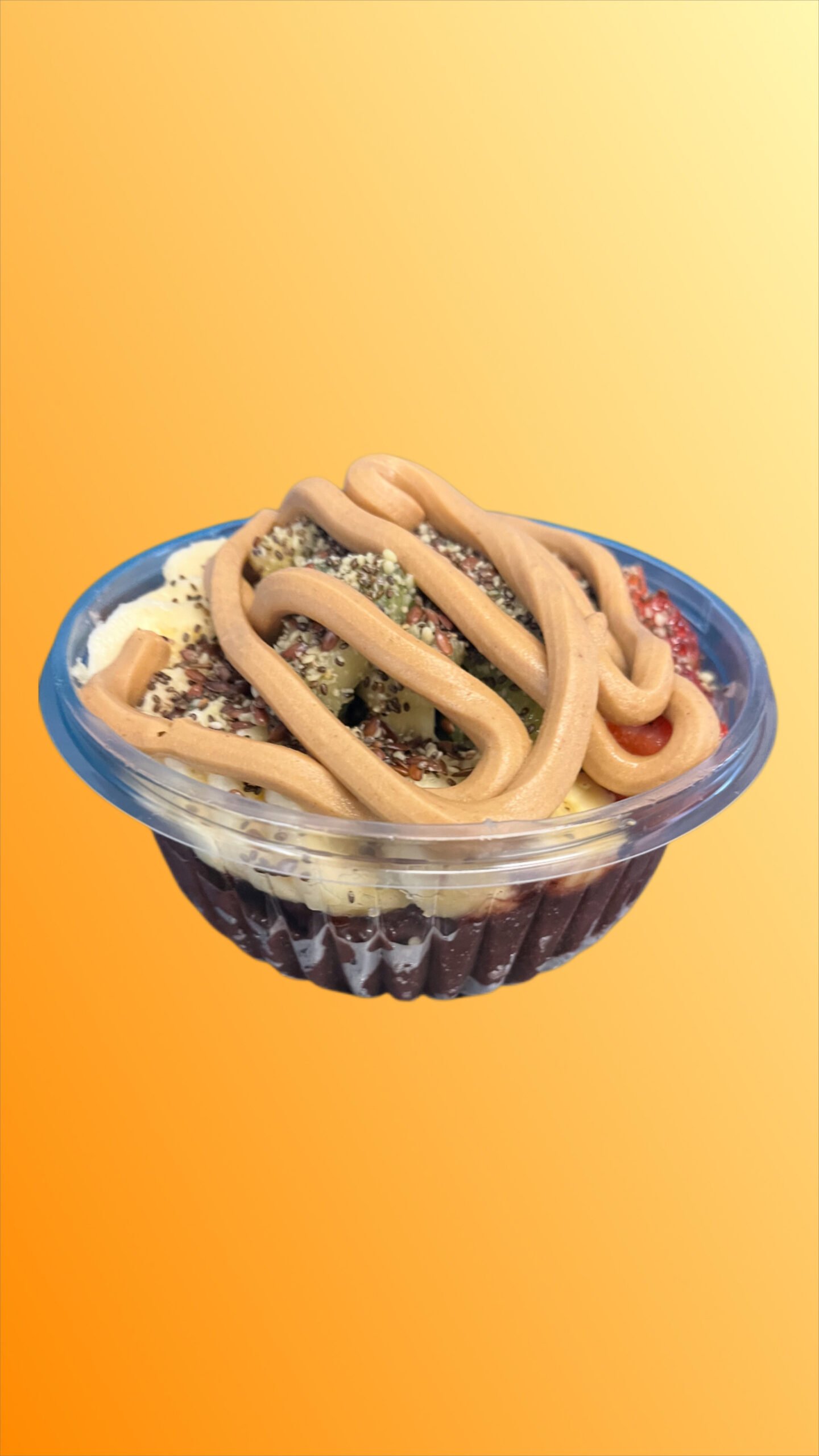Acai base, banana, kiwi, strawberries, trio nut mix topped with peanut butter.